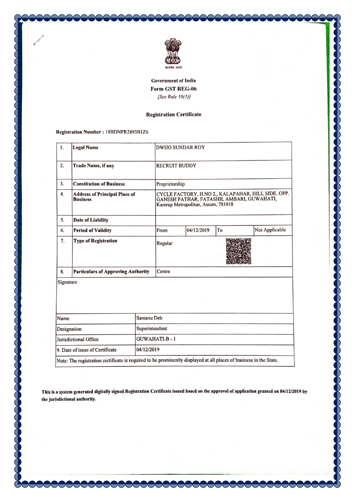 • The registration is valid for a lifetime or until job confirmation, whichever occurs first.